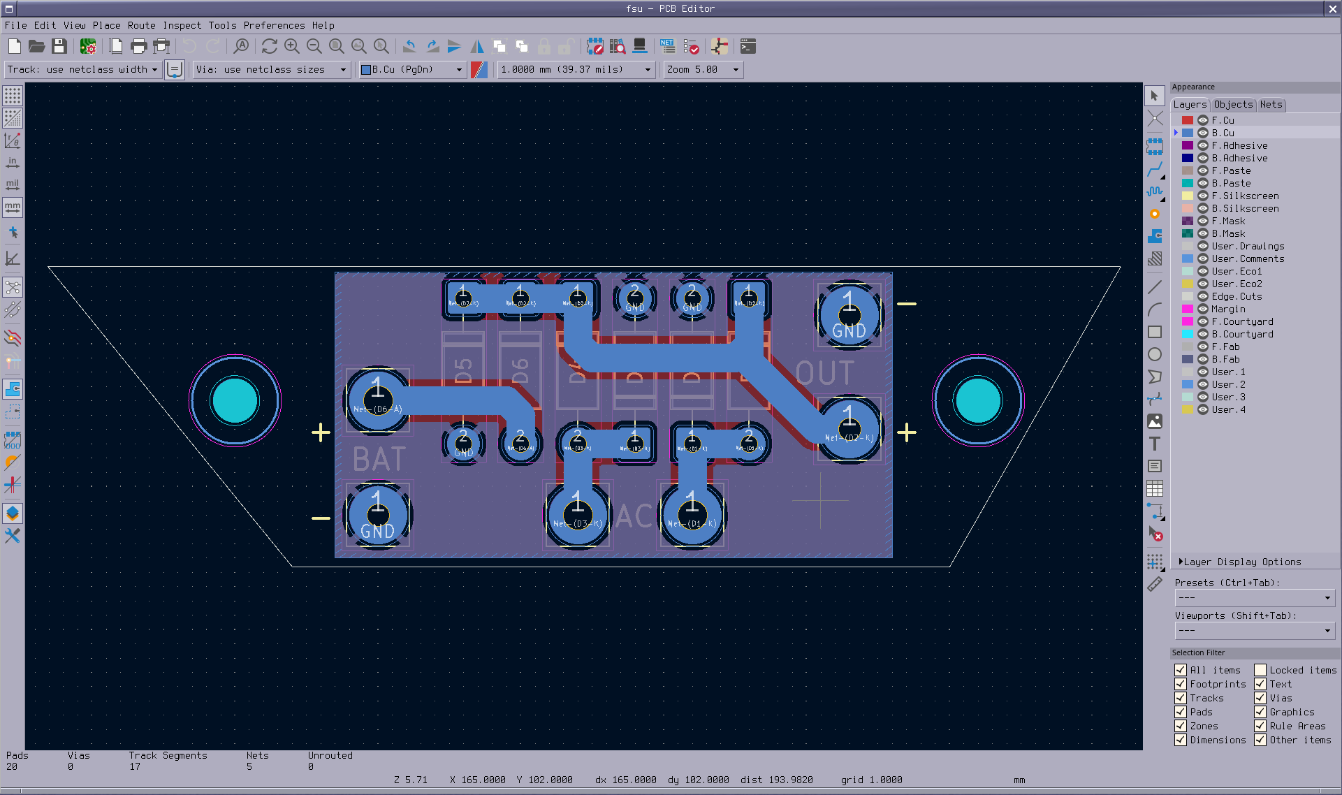 The original circuit was a stack of discs inside a specially made battery holder, and I can't be bothered making the battery holder. Instead went for a little board that can tuck neatly by the rear axle.